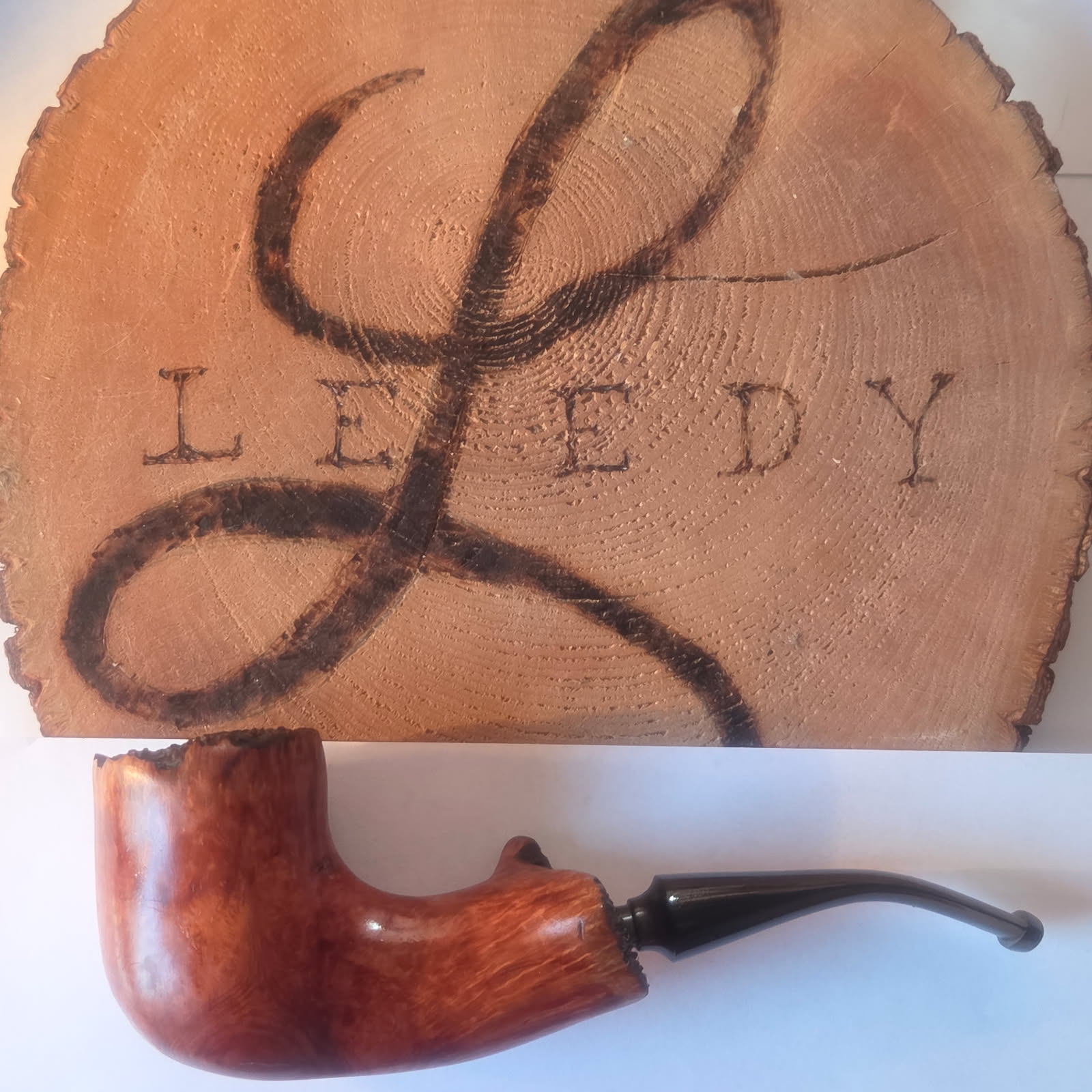 Leedy Ultra Ohioian Freehand. 2.75″ tall, 7″ long, 5/8″ chamber. Rustic Brown finish. Black Vulcanite Stem. The state of Ohio is carved into the butt of the shank.